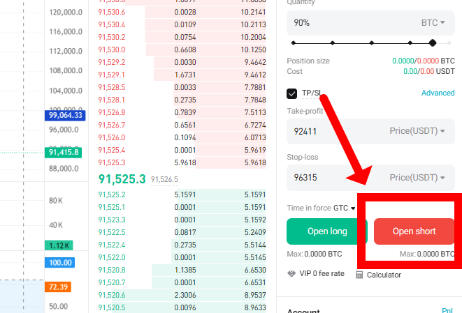 - $100,000에 숏 포지션 진입 → $93,000 도달 시 수익 실현