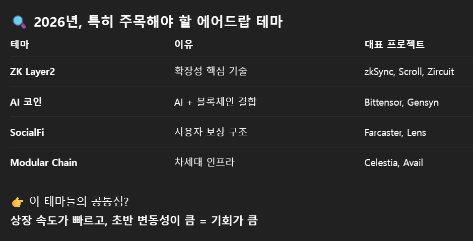 | 주제 | 2026년 에어드랍 참여 + 수익화 전략 |